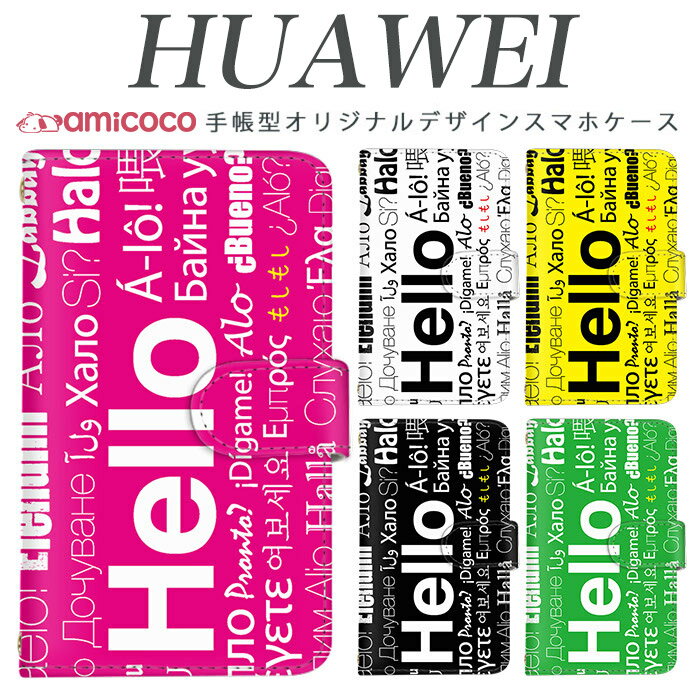 HUAWEI 手帳型 スマホケース ファーウェイ ふぁーうぇい ハロー hello あいさつ カード収納 ショルダー レザー LAY-L09 MAR-LX2 HW-01K HUAWEI Mate 9 HUAWEI P30 lite PAR-LX9 HUAWEI nova lite 3 MHA-L29 HW-02L HUAWEI P20 Pro YAL-L21 HWV33 POT-LX2J HUAWEI nova 5T