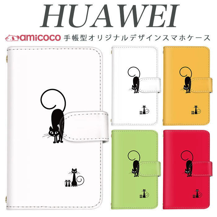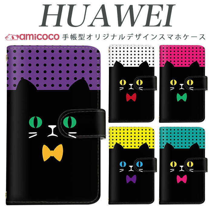 HUAWEI 手帳型 スマホケース ファーウェイ ふぁーうぇい シルエット 黒猫 ドット プレゼント 受注生産 HW-01K PAR-LX9 ANE-LX2J HUAWEI Mate 20 Pro HUAWEI nova lite 3+ VOG-L29 HWV33 LAY-L09 HUAWEI P20 lite HUAWEI nova lite 3 YAL-L21 HUAWEI P30 lite