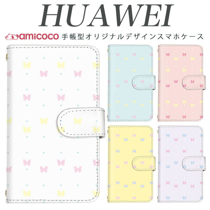HUAWEI 手帳型 スマホケース ファーウェイ ふぁーうぇい パステルカラー 蝶々 ちょうちょ カード収納 プレゼント HW-02L HUAWEI nova 5T HUAWEI nova lite 3 VOG-L29 POT-LX2J ANE-LX2J HW-01K YAL-L21 HWV32 HUAWEI nova lite 3+ HUAWEI Mate 9 HUAWEI P20 lite MAR-LX2