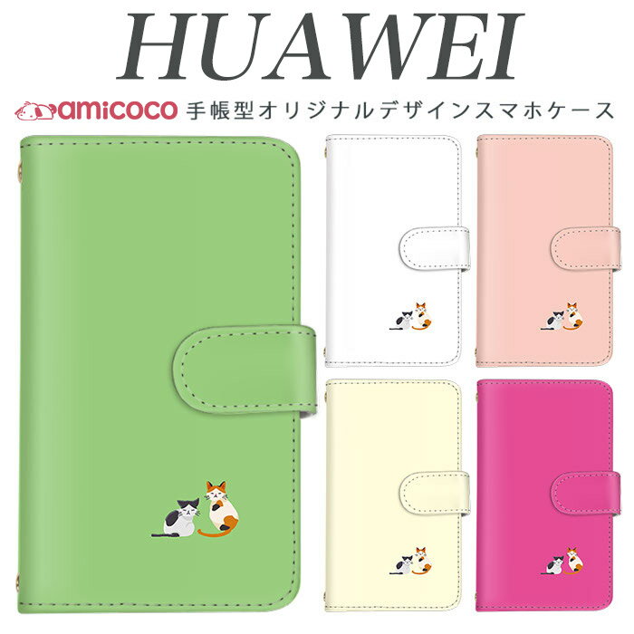 HUAWEI 手帳型 スマホケース ファーウェイ ふぁーうぇい cat キャット ワンポイント 最新機種 対応 カード収納 HWV33 PAR-LX9 POT-LX2J HUAWEI P20 lite LAY-L09 HUAWEI Mate 9 ANE-LX2J YAL-L21 MHA-L29 HUAWEI P30 Pro HUAWEI nova 5T MAR-LX2 HW-02L HWV32