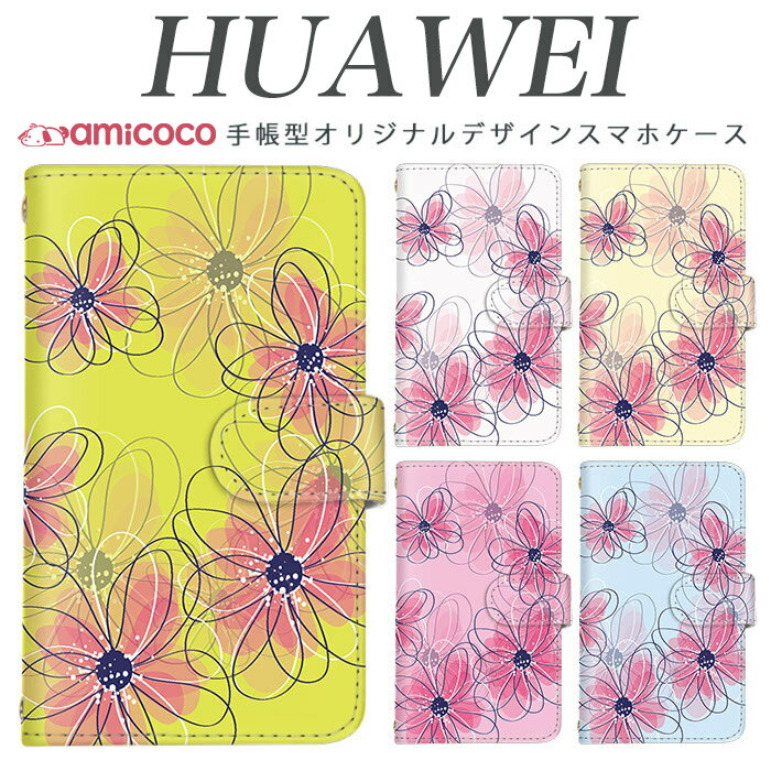 HUAWEI 手帳型 スマホケース ファーウェイ ふぁーうぇい 手書き風 花柄 フラワー ケータイケース スマホ 保護 HUAWEI nova lite 3+ HUAWEI nova 5T HUAWEI P30 lite HWV32 MHA-L29 POT-LX2J MAR-LX2 HWV33 HUAWEI P20 lite HUAWEI Mate 20 Pro HW-02L LAY-L09 YAL-L21