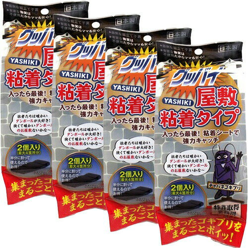 \店内全品ポイント10倍/※要エントリー日本製 ゴキブリ 駆除 ホイホイゴキちゃんグッバイ 屋敷 (YASHIKI) 粘着タイプ 4個セットマンション 一戸建て スプレー 忌避剤 が苦手な方に 害虫 業務用 ごきぶり ごきちゃん ゴキちゃん