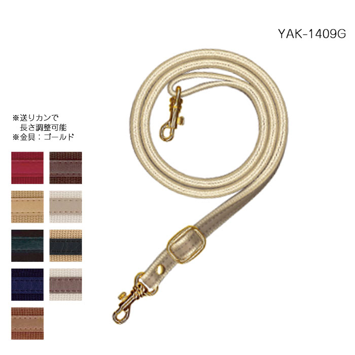 YAT-1409G アクリルテープ×合成皮革ショルダータイプ持ち手 10mm幅 金具:ゴールド (取り寄せ品) (メール便可)