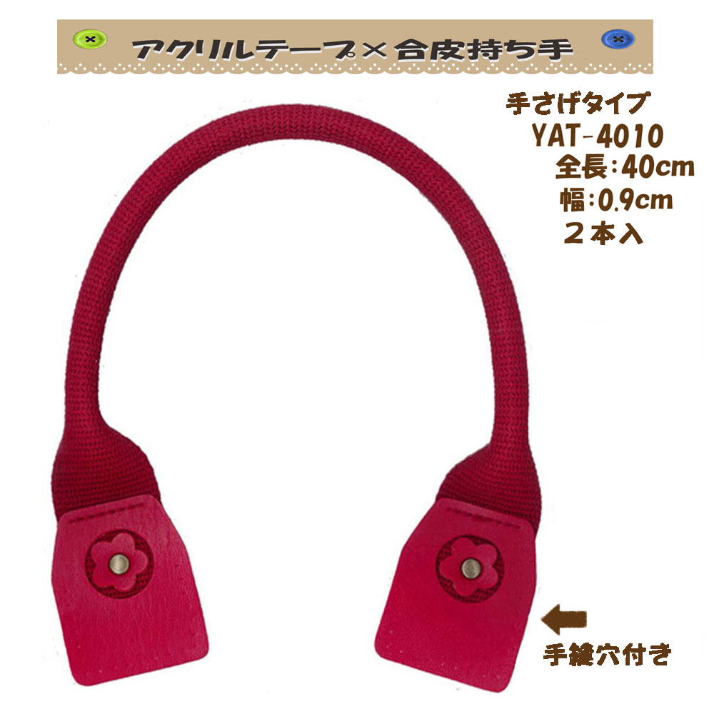 手さげタイプ■ 全長約50cm■ 太さ約1cm■ 幅約3.8cm■ 入数2本■ 素材アクリルテープ×合成皮革 ※ミシン縫い付け可■ 発送こちらの商品はお取り寄せ商品になります。 通常3?4営業日で発送いたします。***アクリルテープ×合成皮革持ち手*** 手さげタイプ YAT-4848 YAT-50 YAT-450 YAT-470 YAT-670 YAT-5038 YAT-4069 YAT-406 YAT-4049 PAT-146 YAT-4092 YAT-3822 手さげタイプ YAT-4014 YAT-4039 YAT-4064 手さげショルダータイプ YAT-606 YAT-6069 レザーオン持ち手 YAT-4336 携帯電話ケース用 YAT-2210 ふろしきバッグ持ち手 YAS-330