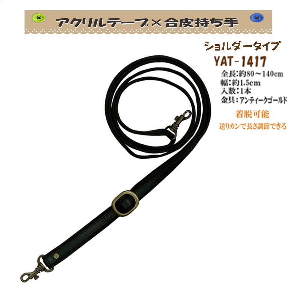 ショルダータイプ■ 全長約70?130cm■ 幅約1.5cm■ 入数1本■ 素材アクリルテープ×合成皮革■ 金具の色ブラックニッケル ※送りカンで長さ調節可能■ 発送こちらの商品はお取り寄せ商品になります。 通常3?4営業日で発送いたします。***アクリルテープ×合成皮革持ち手*** ショルダータイプ YAT-2612 YAT-2212 YAT-1409 YAT-1417 YAT-1429 YAT-1439 YAT-1451 YAM-1431 YAT-1424 YAT-2213BN YAT-2213SS YAT-1410 YAT-1415 YAT-1420 YAT-1430 YAT-1430S YAT-1428 YAT-1438 キッズ持ち手 YAT-427 YAT-507 手さげタイプ YAT-321 YAT-421 YAT-501 YAT-4223 YAT-5023 YAM-4218 YAM-4230 YAM-4236 手さげショルダータイプ YAT-651 YAT-6523 レザーオンショルダー YAT-1435