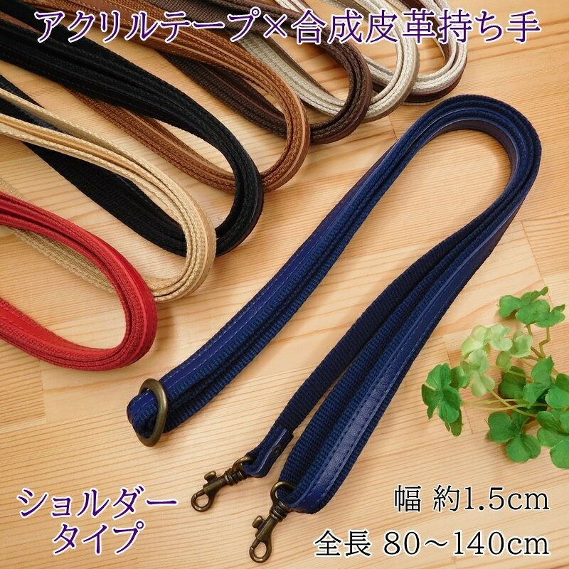 アクリルテープ×合成皮革・ショルダー持ち手です。 ☆送りカンで長さ調節可能。 ☆金具:アンティークゴールド ■全長:約80〜140cm ■横幅:約1.5cm ■入数:1本 ※写真と実際の色が違って見える場合がありますのでご了承ください。
