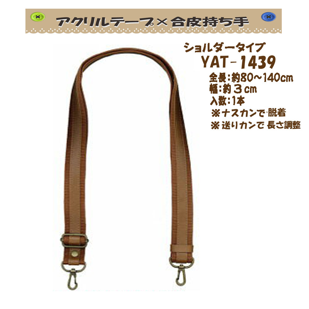 ショルダータイプ■ 全長約70?130cm■ 幅約1.5cm■ 入数1本■ 素材アクリルテープ×合成皮革■ 金具の色ブラックニッケル ※送りカンで長さ調節可能■ 発送こちらの商品はお取り寄せ商品になります。 通常3?4営業日で発送いたします。***アクリルテープ×合成皮革持ち手*** ショルダータイプ YAT-2612 YAT-2212 YAT-1409 YAT-1417 YAT-1429 YAT-1439 YAT-1451 YAM-1431 YAT-1424 YAT-2213BN YAT-2213SS YAT-1410 YAT-1415 YAT-1420 YAT-1430 YAT-1430S YAT-1428 YAT-1438 キッズ持ち手 YAT-427 YAT-507 手さげタイプ YAT-321 YAT-421 YAT-501 YAT-4223 YAT-5023 YAM-4218 YAM-4230 YAM-4236 手さげショルダータイプ YAT-651 YAT-6523 レザーオンショルダー YAT-1435