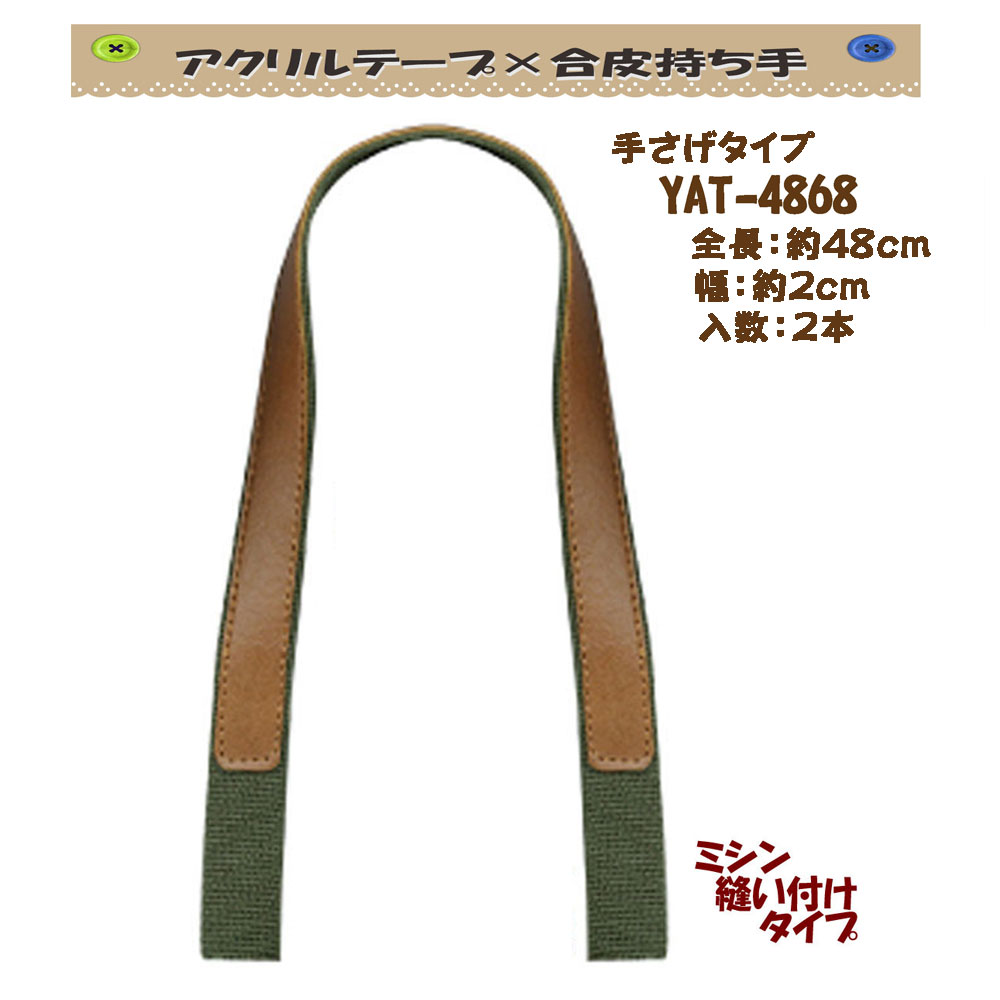 手さげタイプ■ 全長約50cm■ 太さ約1cm■ 幅約3.8cm■ 入数2本■ 素材アクリルテープ×合成皮革 ※ミシン縫い付け可■ 発送こちらの商品はお取り寄せ商品になります。 通常3?4営業日で発送いたします。***アクリルテープ×合成皮革持ち手*** 手さげタイプ YAT-4848 YAT-50 YAT-450 YAT-470 YAT-670 YAT-5038 YAT-4069 YAT-406 YAT-4049 PAT-146 YAT-4092 YAT-3822 手さげタイプ YAT-4014 YAT-4039 YAT-4064 手さげショルダータイプ YAT-606 YAT-6069 レザーオン持ち手 YAT-4336 携帯電話ケース用 YAT-2210 ふろしきバッグ持ち手 YAS-330