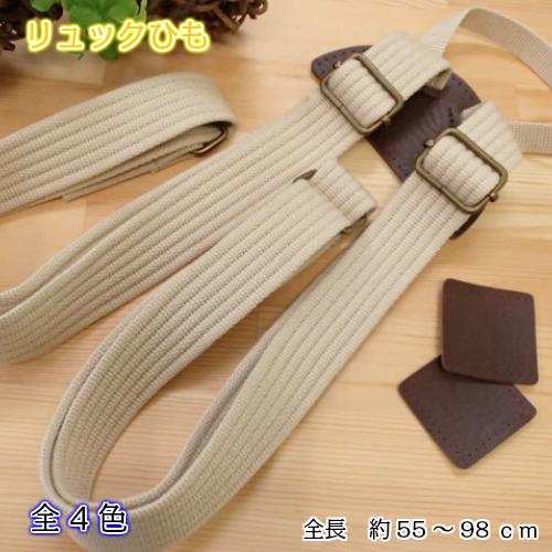 アクリルテープ×合成皮革の持ち手です。 リュックひもタイプです。 ☆金具:アンティークゴールド ■全長:約55〜98cm ■幅:約3cm ■入数:1本 (あて布2枚・原寸大型紙とレシピ付) ※写真と実際の色が違って見える場合がありますのでご了承ください。