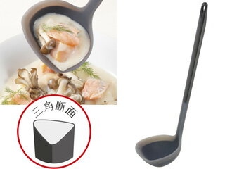 鍋にフィットして残さずすくえる、両側からそそぎやすい形状。 炒め物にも活躍します。 握ることを追求した三角断面グリップで、調理中の動作を効率良くスムーズにします。鍋にフィットして残さずすくえるお玉。スクレーパーのように鍋底に残ったカレーも取りきります。 角のある先端形状でそそぎやすいのがポイントです。 そそぐ・炒める・集める・盛り付けるなど、調理中の様々な動作をスムーズにします。 商品情報 材質ナイロン・シリコーンゴム耐熱温度200℃サイズ約87×70×274mm K534BK