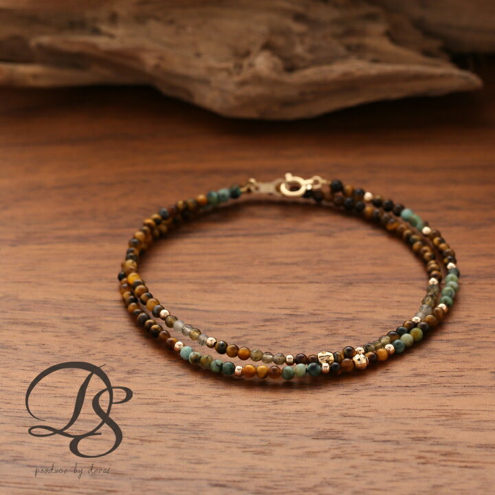 18金 ブレスレット k18 レディース シンプル 2連 タイガーアイ ベース ターコイズ グリーンラブラドライト天然石 2mm k18 18金ブレスレット 男性 ペア 18k 天然石ブレスレット ブレス 14cm + 3cm ストーンブレス k18ブレスレット