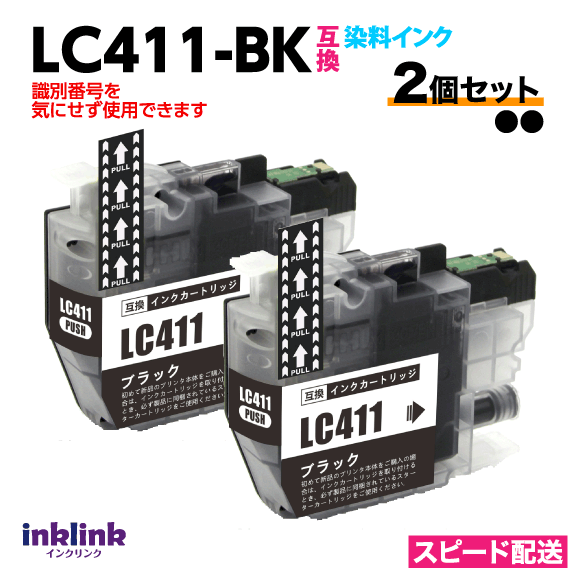 LC411BK ブラック 2個セット 染料インク ブラザー 互換インク ロット番号 識別番号を気にせず使える最新チップ