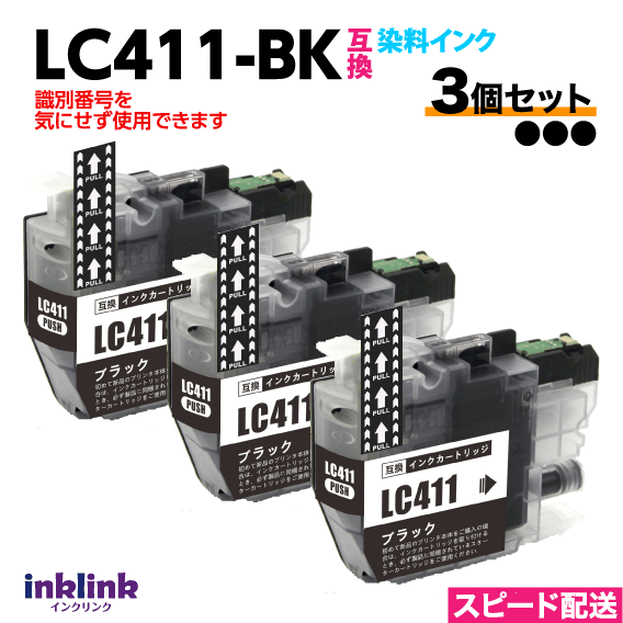 LC411BK ブラック 3個セット 染料インク ブラザー 互換インク ロット番号 識別番号を気にせず使える最新チップ