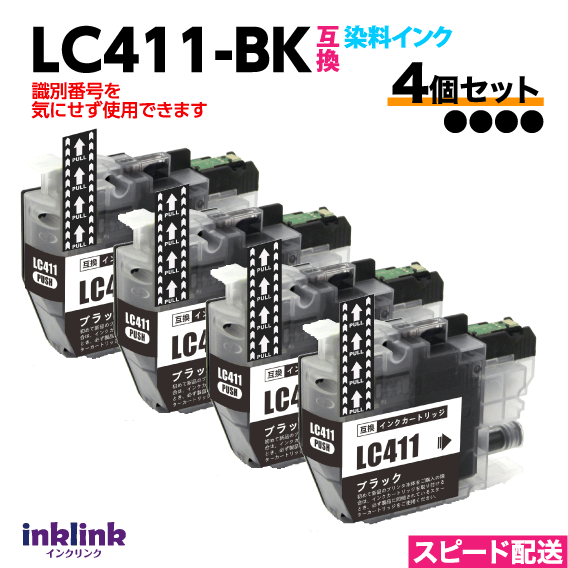 LC411BK ブラック 4個セット 染料インク ブラザー 互換インク ロット番号 識別番号を気にせず使える最新チップ