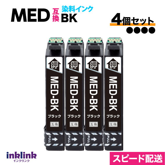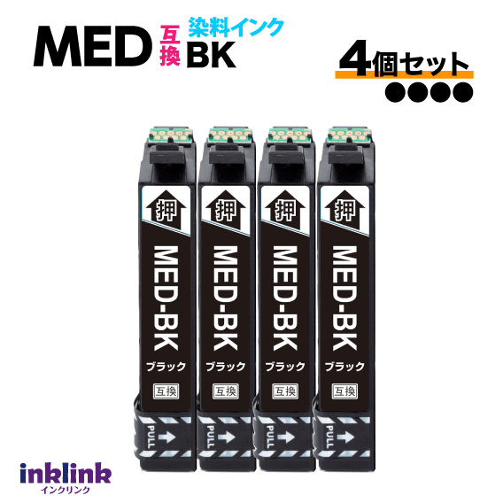 MED-BK ブラック 黒 互換インク 4個セット〔スピード配送〕エプソン EW-056A EW-456A用 EPSON プリンターインク 目印 メダマヤキ