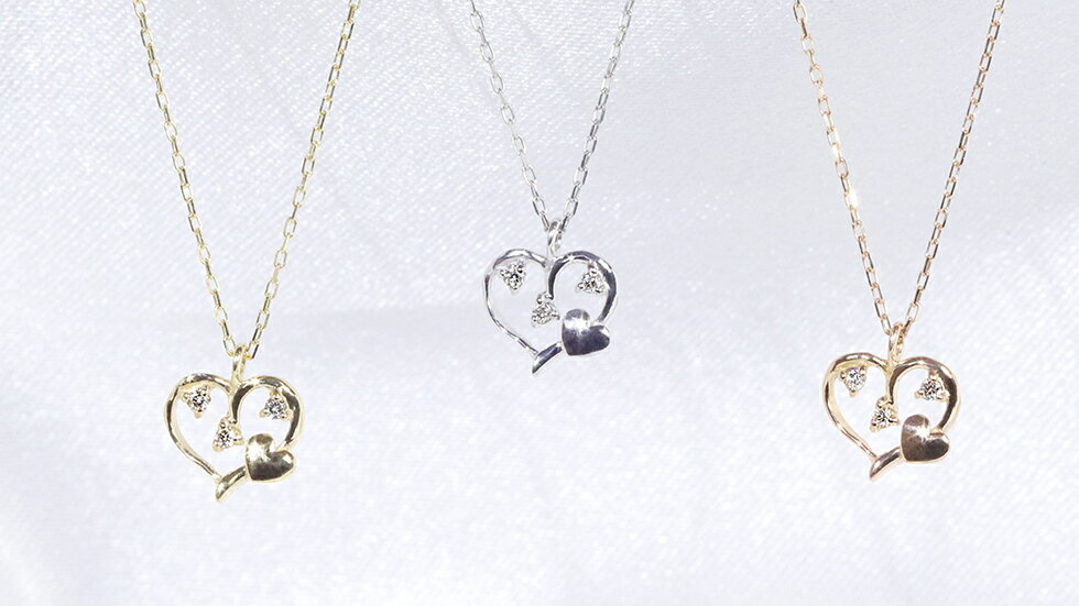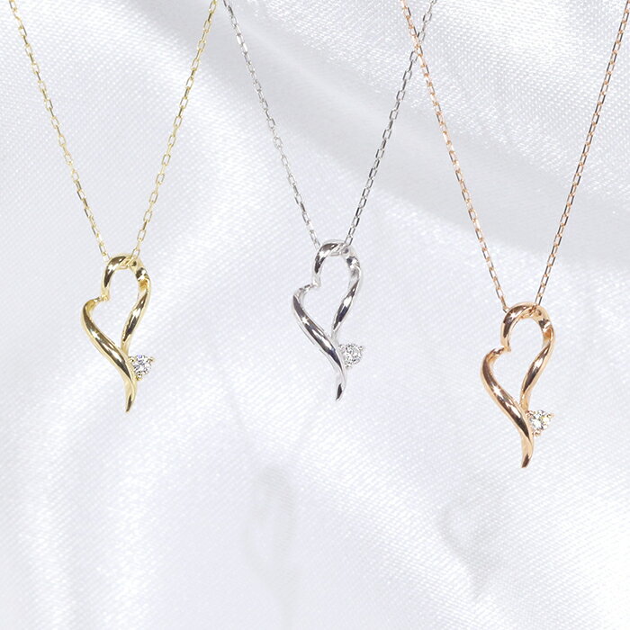 可愛い ハート モチーフ ダイヤ ペンダント ネックレス 0.02ct K10 ホワイトゴールド イエローゴールド ピンクゴールド レディース アクセサリー ジュエリー レディース 4月誕生石 【送料無料】