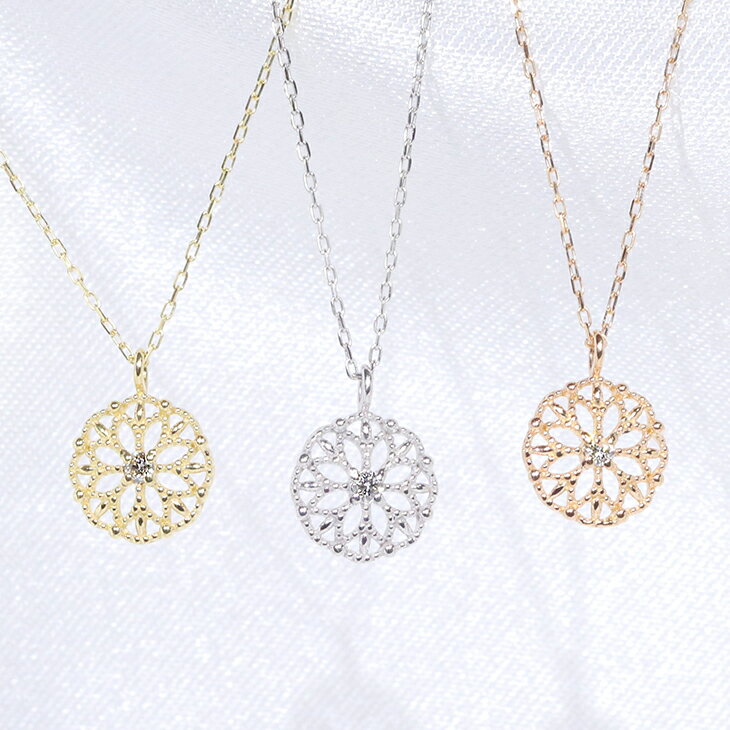 【★お手頃な値段★】K18YG/WG/PG フラワーモチーフ ダイヤモンド ファッション ジュエリー アクセサリー レディース 4月誕生石 ペンダント ネックレス K18 18金 flower 花 「4P0640-k18」【送料無料】 *
