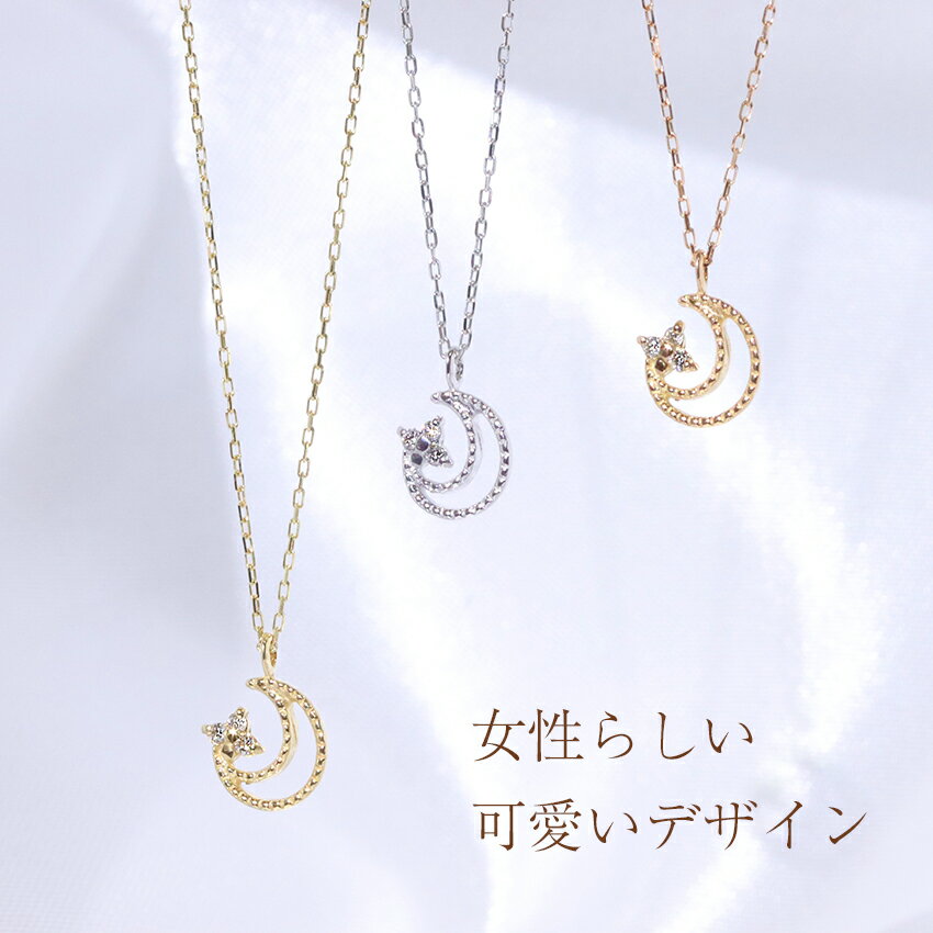 ファッション・ジュエリー・アクセサリー・レディース・ネックレス・ペンダント・ゴールド・ホワイトゴールド・イエローゴールド・ダイヤモンド・プチ・つき・月・ムーン・クレセント・三日月・ダイヤ・4月誕生石・送料無料・品質保証書・プレゼント *