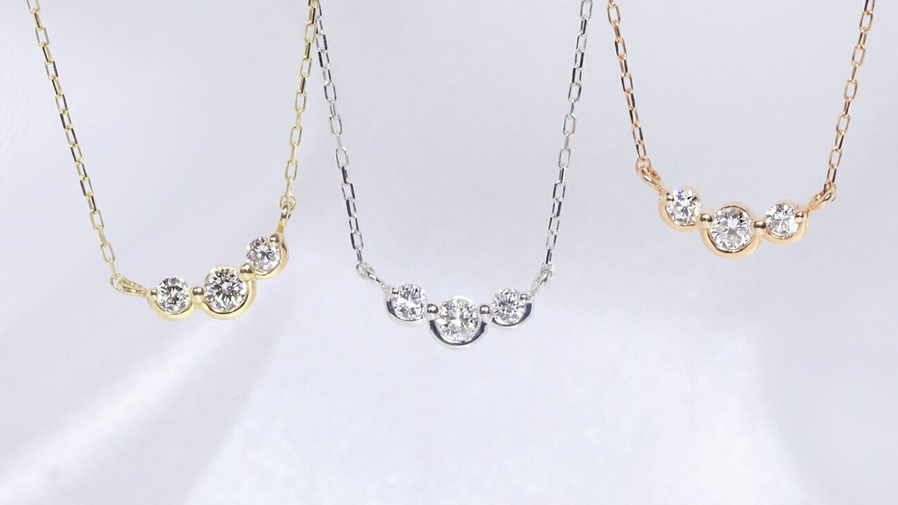 K10 0.06ct YG WG PG 胸元に優しいアクセント 三連上質ダイヤ プチペンダント ネックレス バレンタイン ホワイトゴールド イエローゴールド ピンクゴールド ファッション ジュエリー レディース アクセサリー 10金【送料無料】
