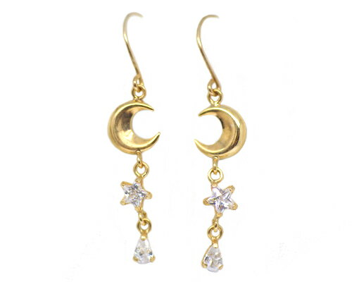 K10 YG/WG/PG キュービックジルコニア ムーン&スター ピアス