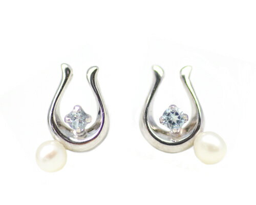 K10 YG/WG/PG ブルートパーズ パール 馬蹄 ピアス