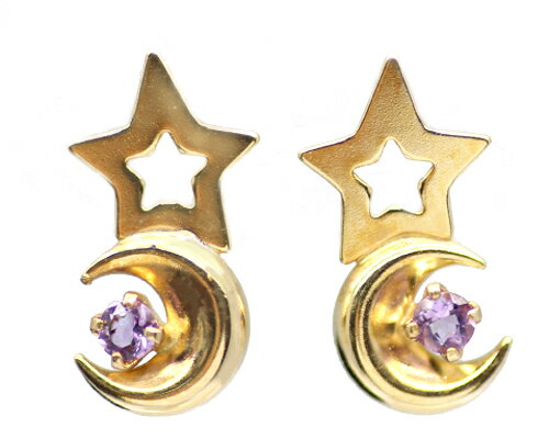 K10 YG/WG/PG アメジスト ムーン&スター ピアス