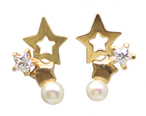 K10 YG/WG/PG キュービックジルコニア パール スター ピアス