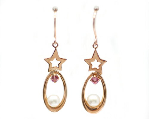 K10 YG/WG/PG ピンクトルマリン パール スター ピアス