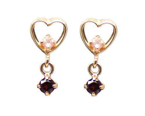 フェミニンなハートモチーフのデザインピアス。 煌めくガーネットとローズクオーツが顔周りをぱっと華やかにしてくれます。 記念日や誕生日、ホワイトデー、クリスマスなどの贈り物にもお勧めです。 セット内容 化粧箱・品質保証書 地金 K10 YG/WG/PG 大きさ 縦約9mm×横約5mm 石について ガーネット:2石 ローズクオーツ:2石 総重量 約0.2g 刻印 K10