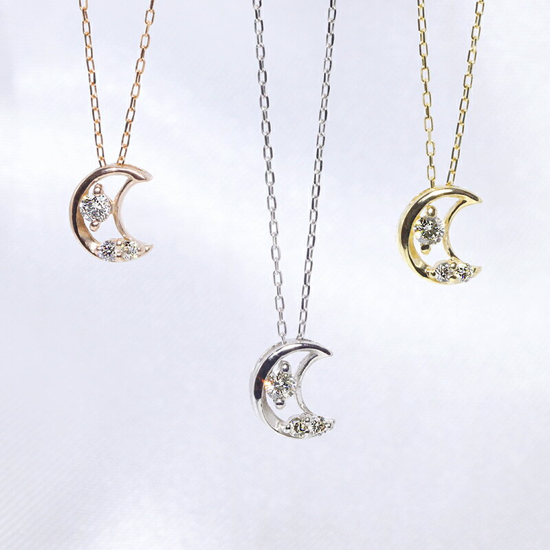 ファッション・ジュエリー・アクセサリー・レディース・ネックレス・ペンダント・ゴールド・ホワイトゴールド・イエローゴールド・ダイヤモンド・プチ・つき・月・ムーン・クレセント・三日月・ダイヤ・4月誕生石・送料無料・品質保証書・プレゼント *