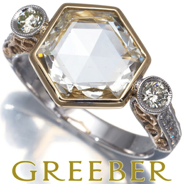 商品詳細 【商品ランク】 ※詳細はランク表をご確認下さい。S【ジャンル】リング/指輪/ring【ブランド】-【素材】K18YG/18金/イエローゴールド/K18WG/18金/ホワイトゴールド/K18PG/18金/ピンクゴールド【重量】7.0g【サイズ】リングサイズ:22号デザイン幅:約14.0mmリング腹側幅:約3.2mm【石目】ダイヤモンド中石:3.286ct脇石:総計0.43ct【付属品】GGSJ発行のソーティングメモ【商品状態】新品仕上げ済み 【商品管理番号】 178743 商品説明 ライトイエローの3ctものスライスカットダイヤモンドをメインに飾った素晴らしい逸品。僅かに内包物はございますが、お手元では気にならないレベルかつ、素晴らしい透明感が印象的な一石です。背面はローズカットのような大きなトライアングルの面が印象的で、ショルダー部分は透かし細工やスリーカラーのゴールドを用いた美しい装飾とクリア&イエローの上質なダイヤモンドを贅沢に演出したリングを是非いかがでしょうか。【備考】リングのサイズ直しを有料にて承っております。一部ブランドジュエリーやデザインによってお直しができない商品もございますのでご希望の場合は事前にお問い合わせください。 【商品ランクについてはこちら】