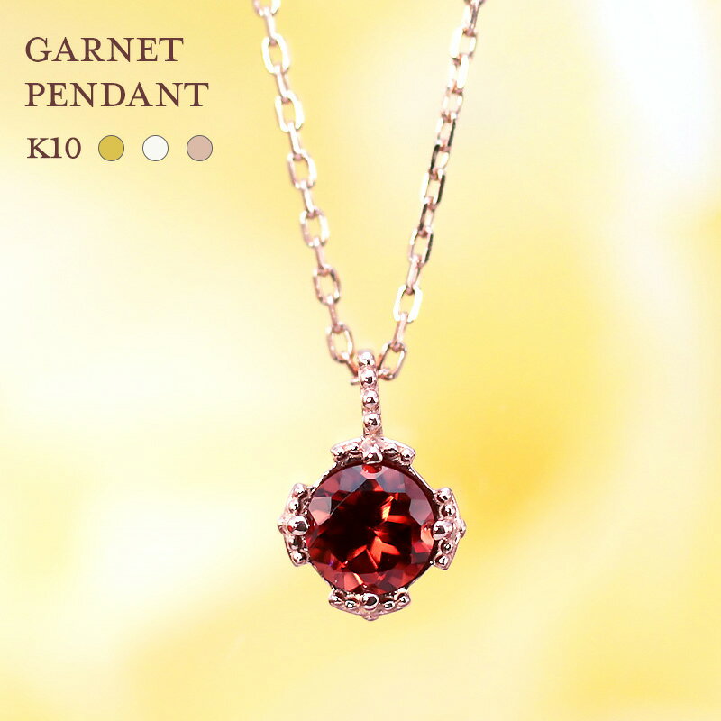 【即納可能】K10 YG/WG/PG ガーネット 柘榴石 クラシカル アンティーク ペンダント ネックレス 一粒 ゴールド 10金 ゴールドカラーは選べる ギフト 10k スリーカラー 誕生石 可愛い 天然石 パワーストーン プレゼント 1月 母の日