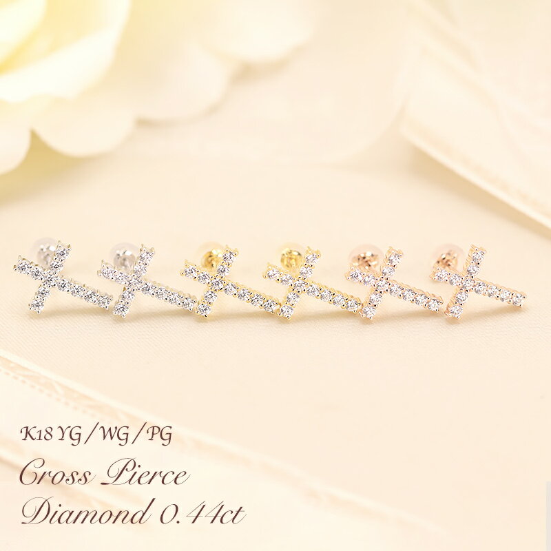 K18 YG/WG/PG ダイヤモンド 0.44ctUP 【Hカラークラス/SIクラス】 クロス モチーフ ピアス 十字架 ゴールド 18金 18k ダイヤ 11p ゴールドカラーは選べる かわいい おしゃれ スリーカラー プレゼント ギフト 両耳 プレゼント 母の日