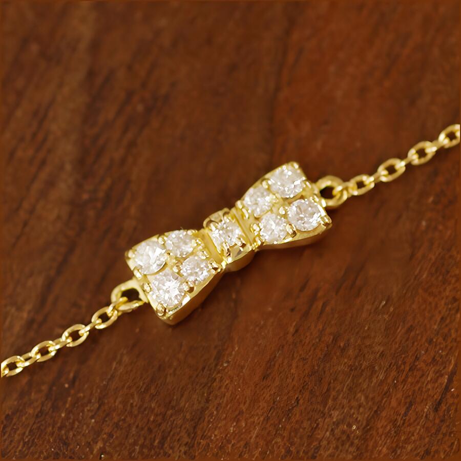 K18 K10 リボン パヴェダイヤ ブレスレット 蝶 リボンモチーフ ダイヤモンド ブレス ダイヤ 金 イエロー ピンク ホワイト アジャスター ギフト プレゼント 贈り物 送料無料