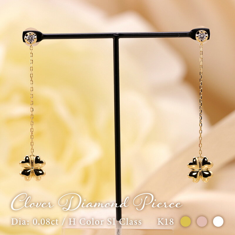 K18 YG/WG/PG ダイヤモンド 0.08ctUP 【Hカラークラス/SIクラス】 クローバー モチーフ ピアス 四葉 幸運 ゴールド 18金 ダイヤ 2p かわいい おしゃれ スリーカラー クリスマス プレゼント ギフト 両耳 お守り プレゼント 母の日