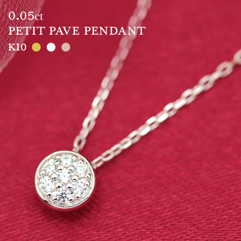 K10YG/WG/PG ダイヤモンド 0.05ctUP 【Hカラークラス/SIクラス】 プチパヴェペンダント ネックレス ペンダント ダイヤ 7p ゴールド 10金 ゴールドカラーは選べる プレゼント ギフト パヴェ K18 スリーカラー プレゼント 母の日