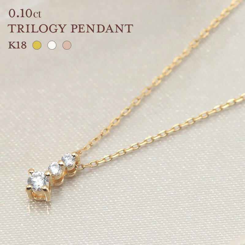 【即納可能】K18YG/WG/PG ダイヤモンド 0.1ctUP 【Hカラークラス/SIクラス】 トリロジー ペンダント ペンダント ネックレス ダイヤ 3p 0.1キャラット ゴールド 18金 ゴールド ギフト 18k プレゼント 彼女用 妻用 20代 30代 40代 50代 母の日