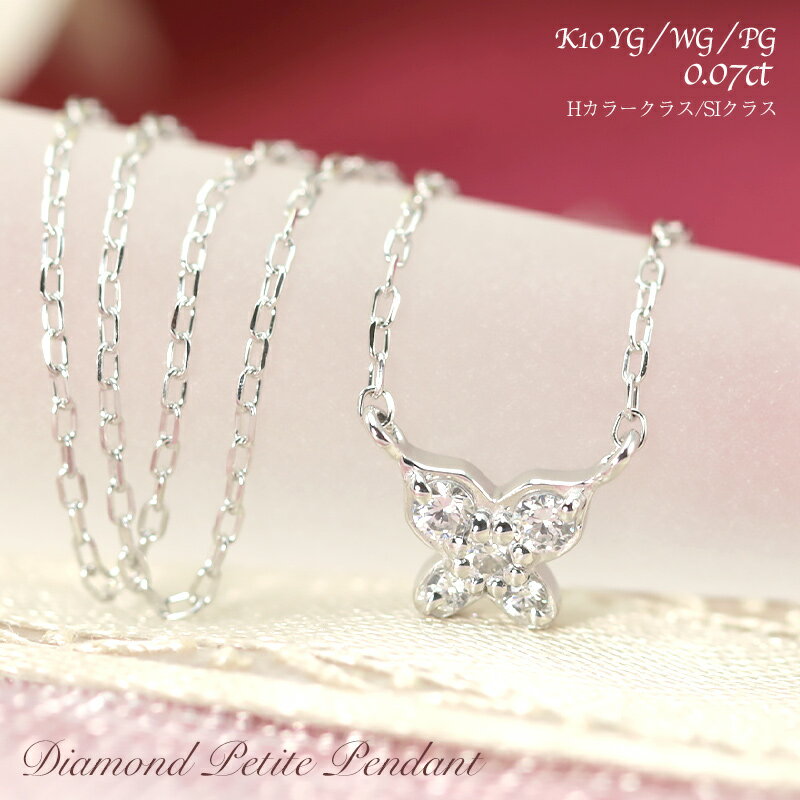 K10 YG/WG/PG ダイヤモンド 0.07ct 【Hカラークラス/SIクラス】 蝶々 プチ ペンダント ネックレス ダイヤ ゴールド 10金 K10 ゴールドカラーは選べる ギフト 記念日 かわいい 華奢 おしゃれ 上品 小さい アミュレット プレゼント 母の日