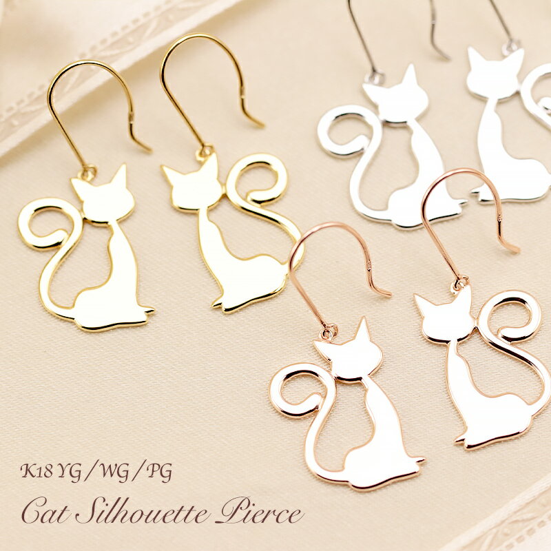 K18 YG/WG/PG 猫 シルエット ピアス cat ゴールド 18金 ゴールドカラーは選べる プレゼント ギフト K18 スリーカラー アメリカンフック かわいい おしゃれ 揺れる おすわり プレゼント 彼女用 妻用 クリスマス 母の日