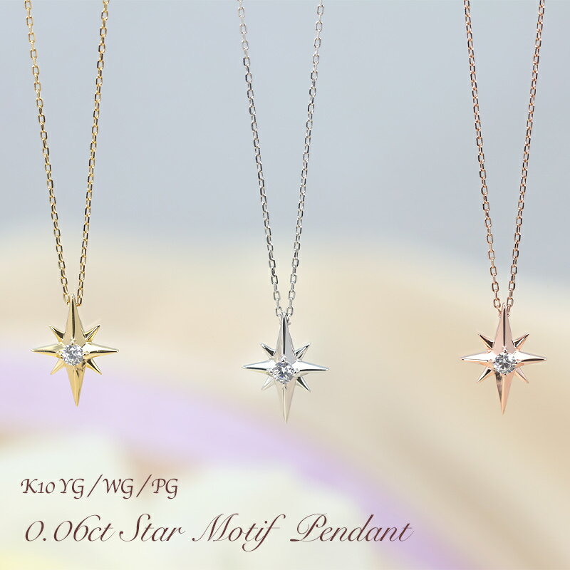 K10 YG/WG/PG ダイヤモンド 0.06ctUP 【Hカラークラス/SIクラス】 スター モチーフ ペンダント ネックレス ペンダント 星 ダイヤ ゴールド 10金 ゴールドカラーは選べる プレゼント ギフト K10 スリーカラー プレゼント 母の日
