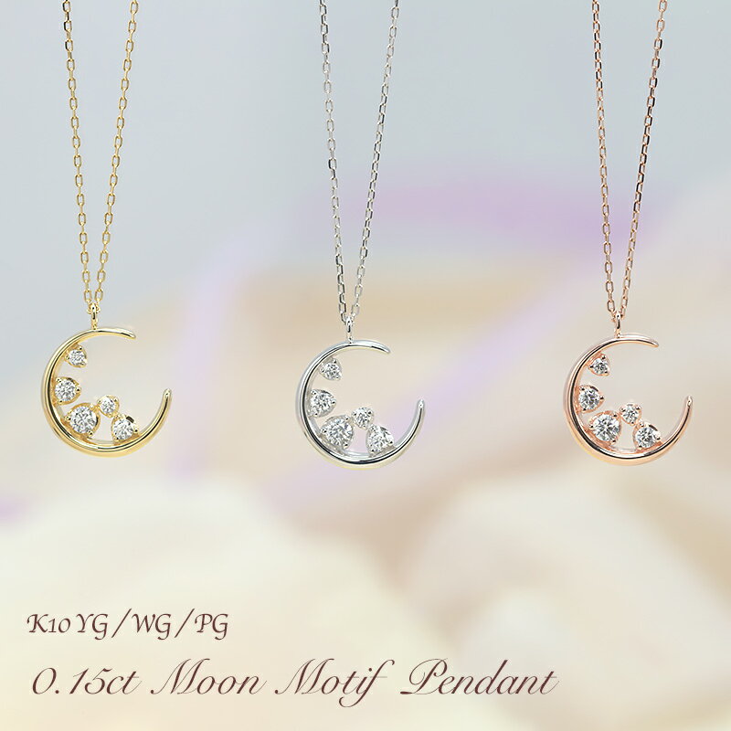 K10 YG/WG/PG ダイヤモンド 0.15ctUP 【Hカラークラス/SIクラス】 ムーン 月 モチーフ ネックレス ペンダント 三日月 ダイヤ ゴールド 10金 10k ゴールドカラーは選べる プレゼント ギフト スリーカラー プレゼント 母の日