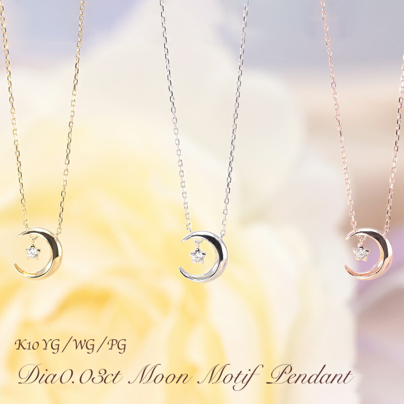 K10 YG/WG/PG ダイヤモンド 0.03ct 【Hカラークラス/SIクラス】 ムーン ペンダント ネックレス ダイヤ ゴールド 10金 K10 ゴールドカラーは選べる プレゼント ギフト 記念日 お守り かわいい おしゃれ 月 三日月 星 プレゼント 母の日