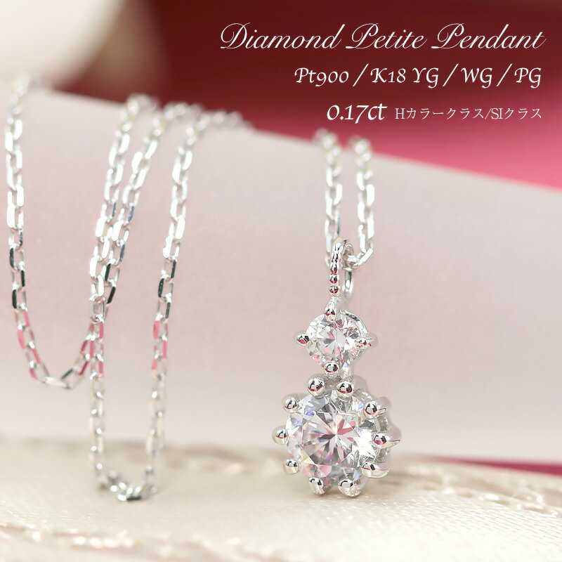 Pt900・K18 YG/WG/PG ダイヤモンド 0.17ct 【Hカラークラス/SIクラス】 プチ ペンダント ネックレス 大粒 ダイヤ 2p プラチナ ゴールド 18金 K18 ゴールドカラーは選べる ギフト 記念日 シンプル エレガント 華奢 おしゃれ 上品 プレゼント 母の日