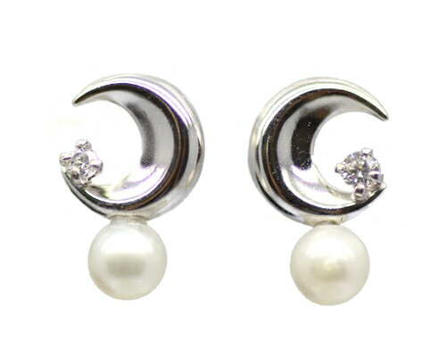 K10 YG/WG/PG ダイヤ パール ムーンピアス