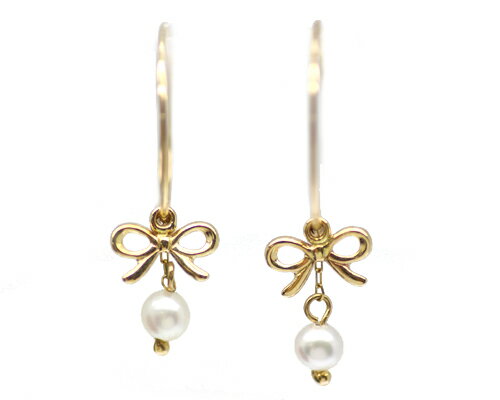 パールが添えられたリボンが可愛いデザインピアス。 ふとした仕草で揺れるパールが、女性らしさを引き立てます。 記念日や誕生日、ホワイトデー、クリスマスなどの贈り物にもお勧めです。 セット内容 化粧箱・品質保証書 地金 K10 YG/WG/PG 大きさ 縦約20mm×横約7mm 石について パール:2珠 総重量 約0.6g 刻印 K10