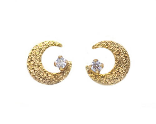 K10 YG/WG/PG ダイヤ ムーン デザインピアス
