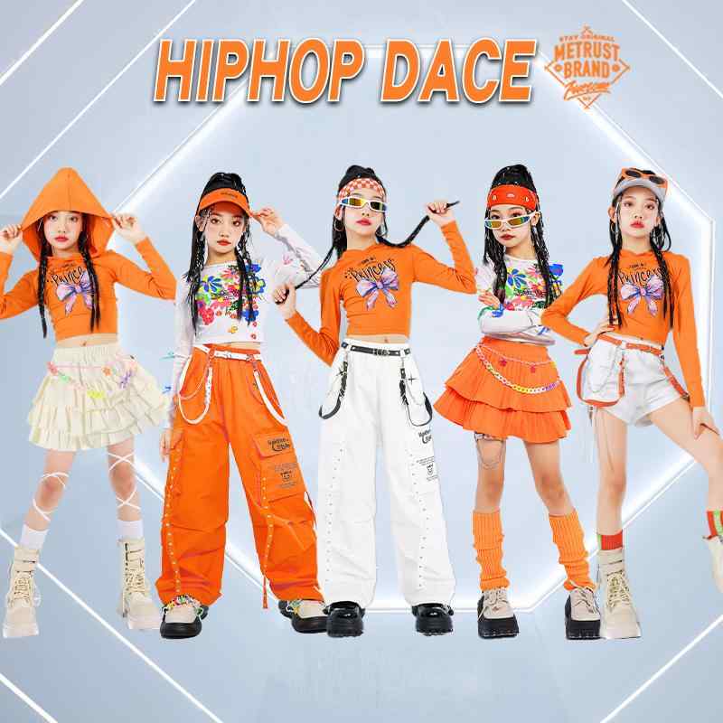 ・対象性別: 女性・ダンスタイプ: ストリートダンス・デザイン要素: セットアップ, プリント・生地加工: 柔軟加工・スタイル: ヒップホップ・主な素材: ポリエステル 20%・カラー展開: ホワイト, オレンジ・対象身長: 110cm, 120cm, 130cm, 140cm, 150cm, 160cm, 170cm・対象年齢: 8歳以上, 身長140cm以上・カテゴリ: キッズコスチューム, ダンスウェア
