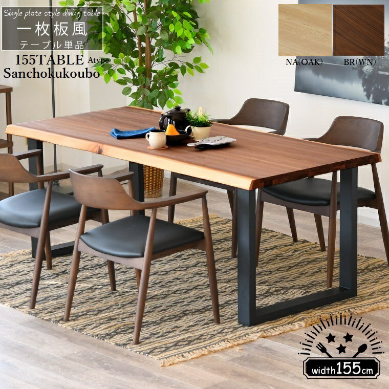 サイズ テーブル:幅 155cm 奥行 85cm 高さ 70cm テーブル天板の小口面には天然木の<のた>耳をそのまま使用しておる為、節、キズやへこみ、断面形状の違いや曲がり、奥行、厚みの違いが生じます。あらかじめご了承ください。 材質 天板 NA/オーク突板、無垢 ウレタン塗装 BR/ウォールナット突板、無垢 ウレタン塗装 脚:スチール 色 天板 NA(OAK) BR(WN) 脚 BKブラック 商品説明 テーブル天板の小口面には天然木の<のた>耳をそのまま使用しておる為、節、キズやへこみ、断面形状の違いや曲がり、奥行、厚みの違いが生じます。あらかじめご了承ください。 テーブルと脚はお客様取り付けになります。 ベトナム工場製作 ※配送は全て宅配便(一人)での玄関渡しとなります。 大型商品、エレベーターのない3階以上にお住まいのお客様は、配達料金が発生いたします事をご了承ください。 (開梱設置サービスは別料金) まれに在庫を切らしました場合は仕上り、 入荷までお待ち頂く場合がございます。 《↓シリーズ 商品紹介↓》 《155A脚テーブル+Aタイプチェア4脚ダイニング5点セット》 《155B脚テーブル+Aタイプチェア4脚ダイニング5点セット》 《155A脚ダイニングテーブル》 《155B脚ダイニングテーブル》 《185A脚テーブル+Aタイプチェア4脚ダイニング5点セット》 《185B脚テーブル+Aタイプチェア4脚ダイニング5点セット》 《185A脚ダイニングテーブル》 《185B脚ダイニングテーブル》
