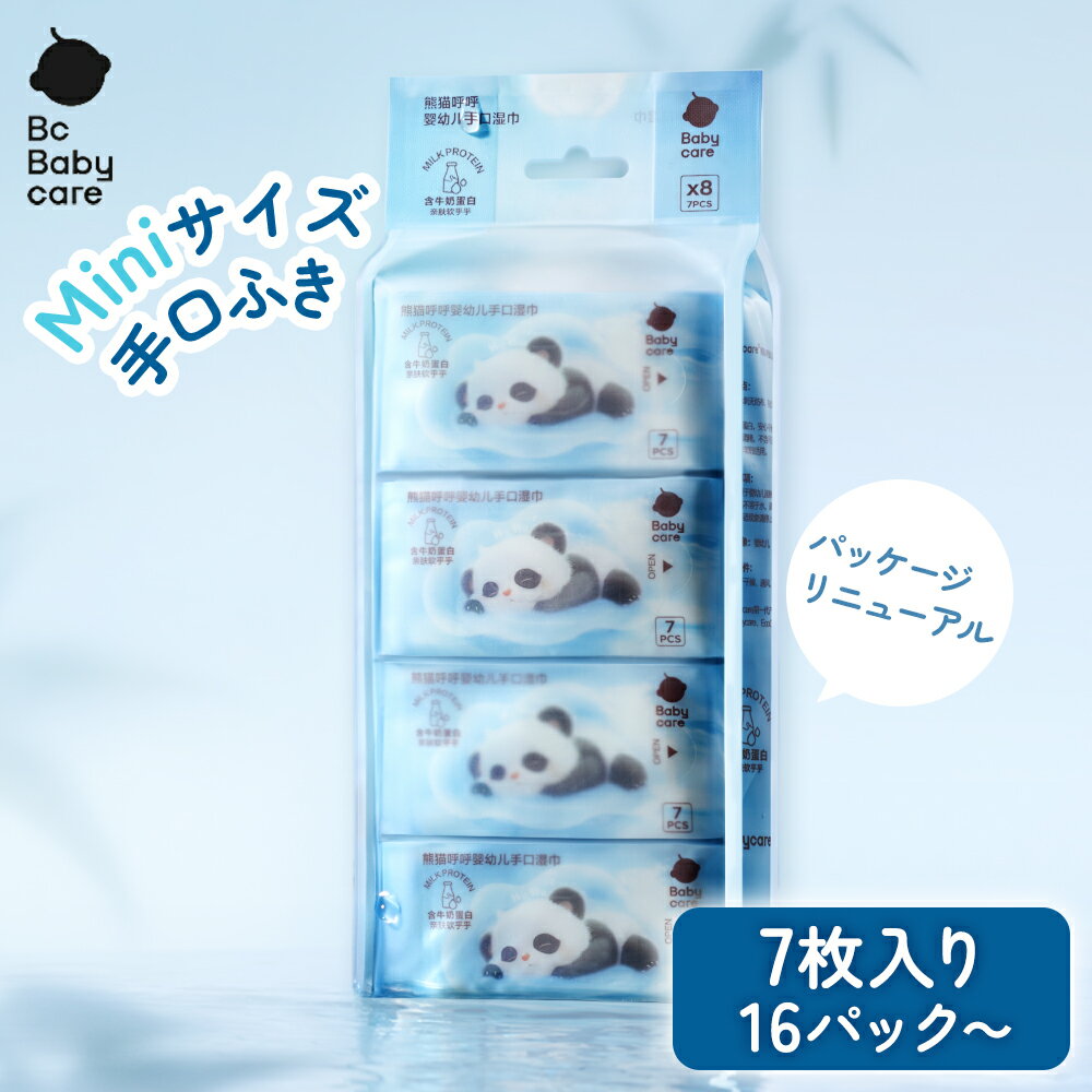 【公式】【SNS話題】手口ふき 携帯用 純水99.9% 赤ちゃん用 ベビー おしりふき 厚手 肌にやさしい パンダ 限定 極小サイズ 7枚 24パック 48パック 80パック コンパクト ミニサイズ| Bc Babycare