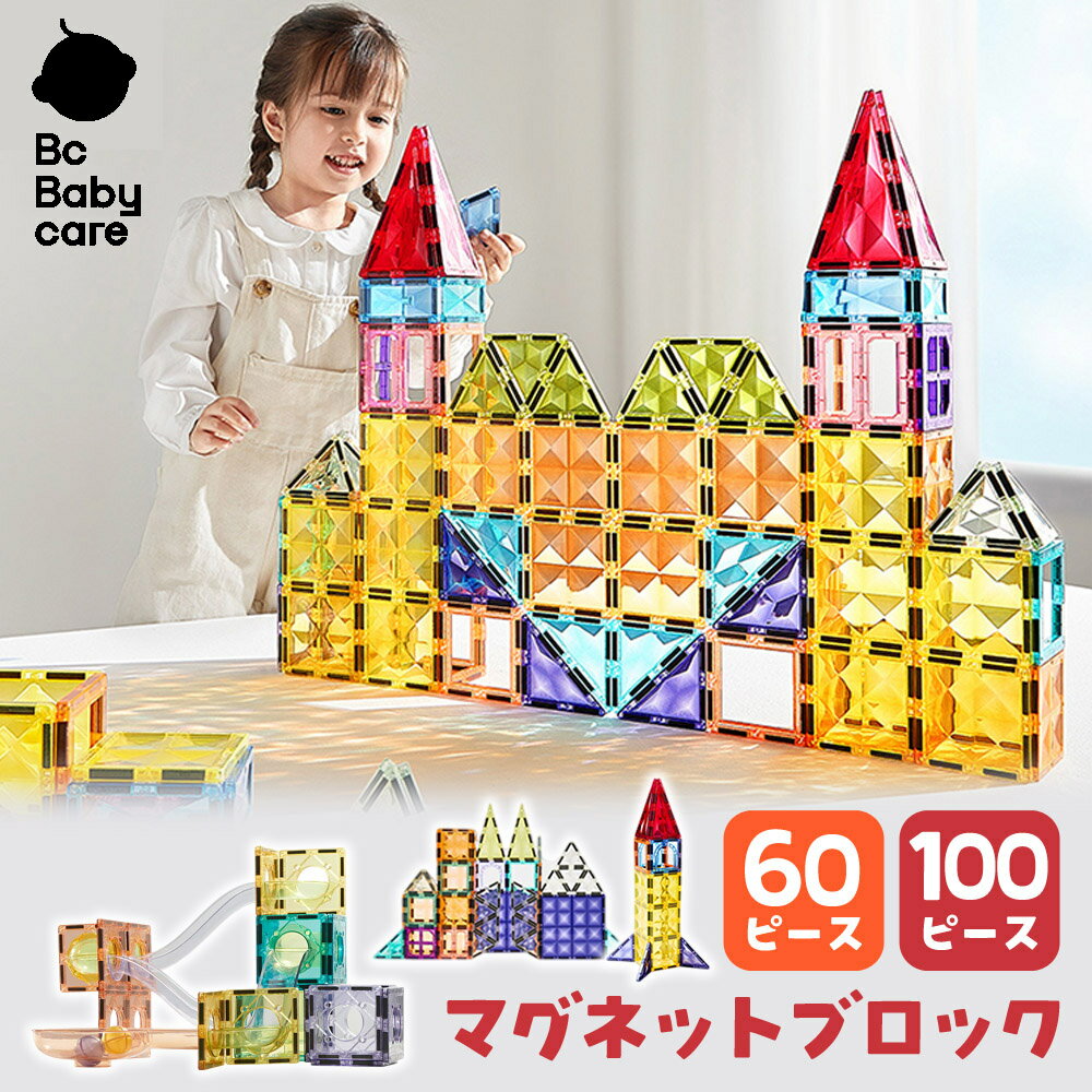 ★ブラックフライデーポイント10倍★【SNS話題】磁石ブロック マグネット おもちゃ 窓バッツ 知育玩具 60pcs 100pcs ブロック ままごと パネル 積み木 立体パズル 知育ブロック 子供 Bc Babycare